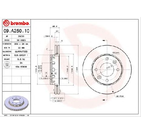 Disc frana BREMBO 09.A250.10Piesa auto pentru KIA CARENS I (FC) 1.8 i